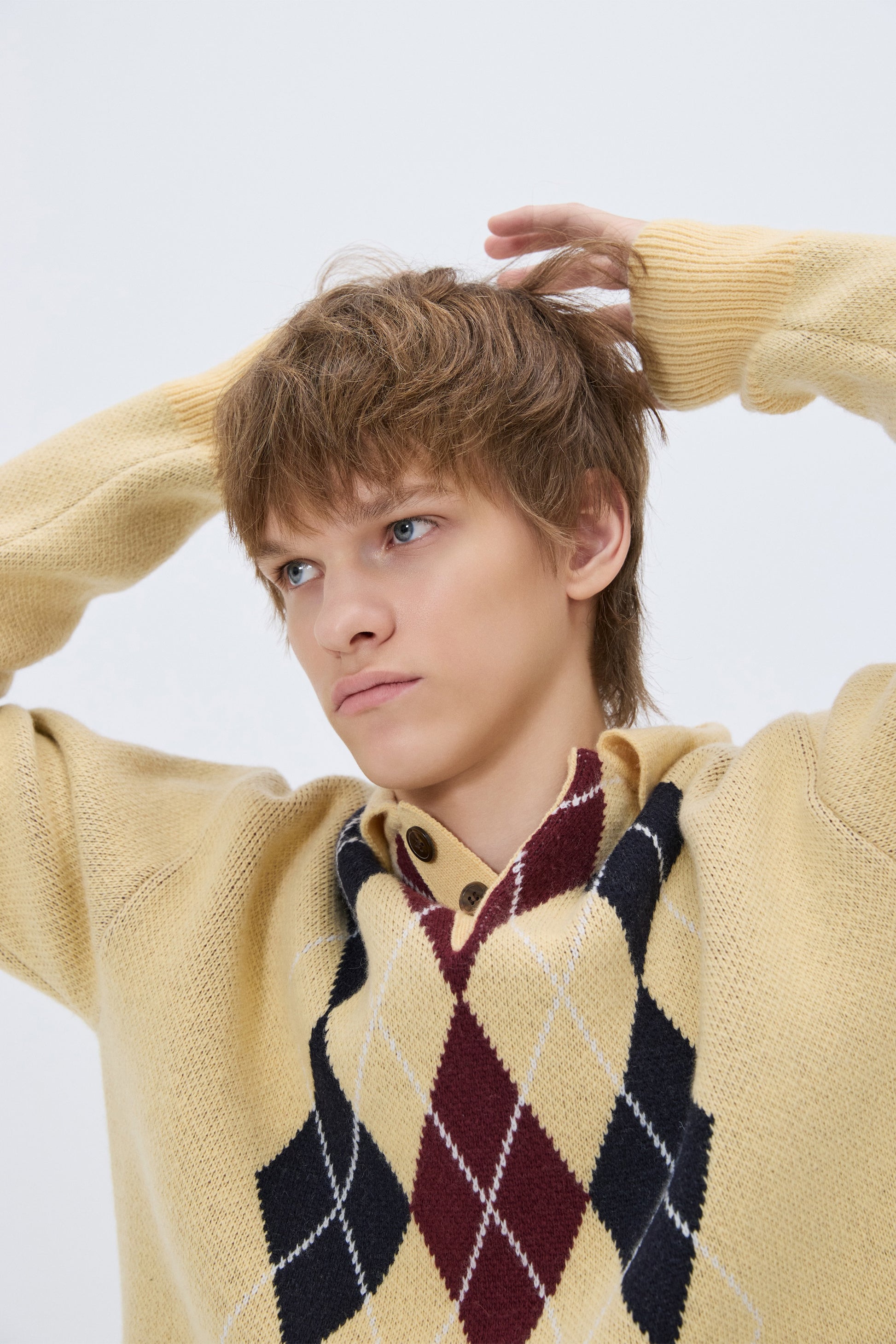 ARGYLE JACQUARD CROP KNIT BEIGE