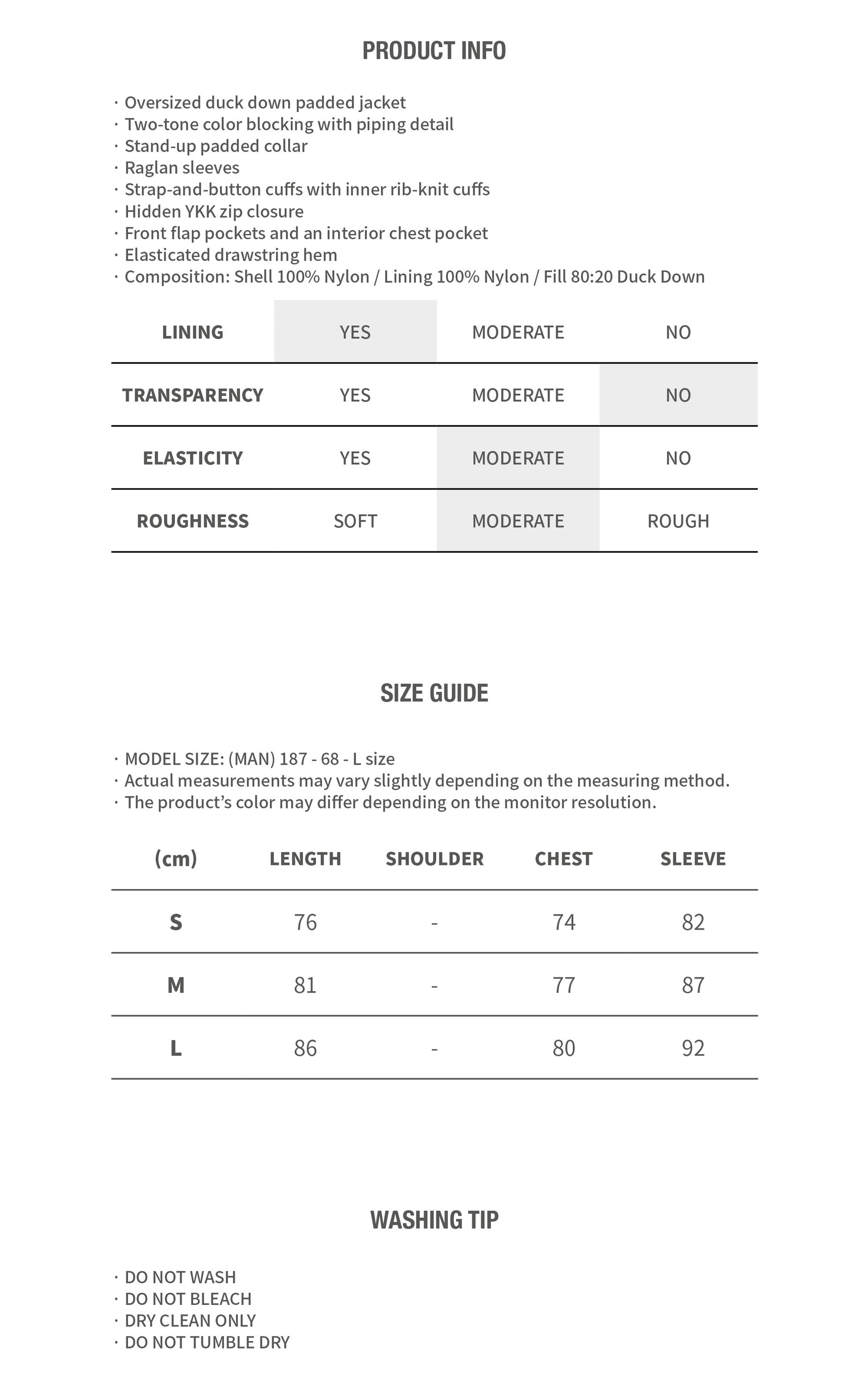 · Composition: Shell 100% Nylon / Lining 100% Nylon / Fill 80:20 Duck Down