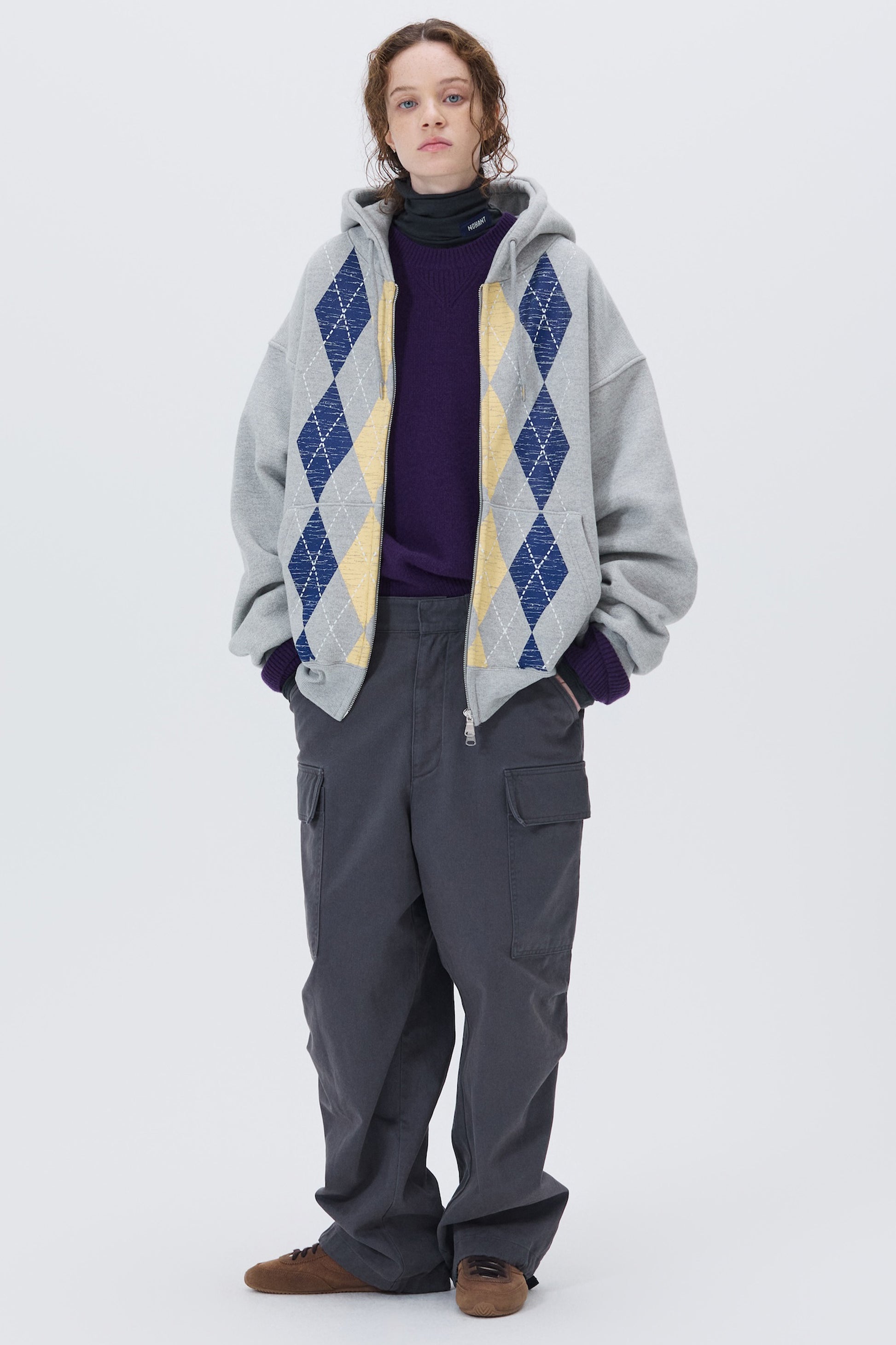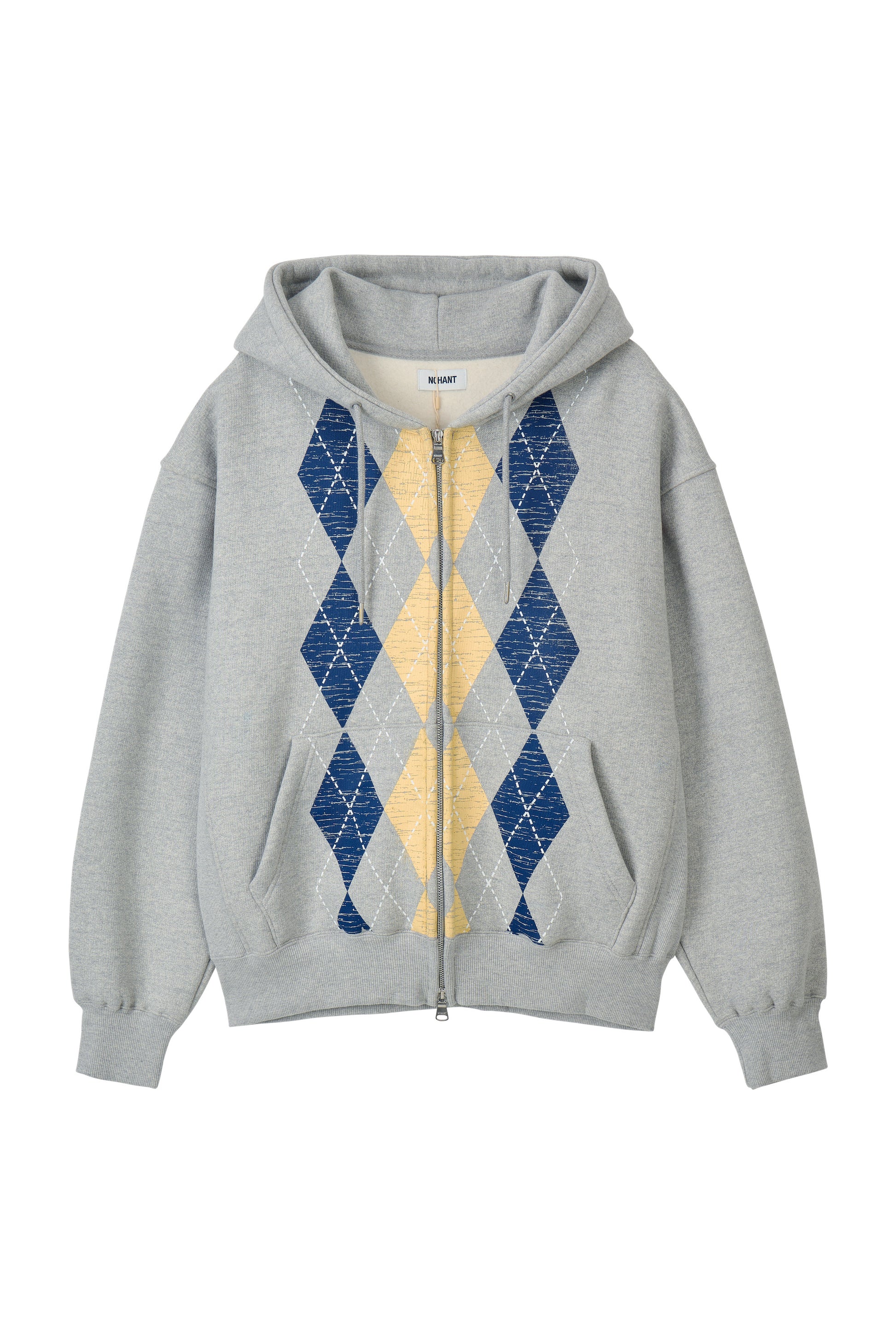 HEAVYWEIGHT ARGYLE HOODIE ZIP-UP GRAY