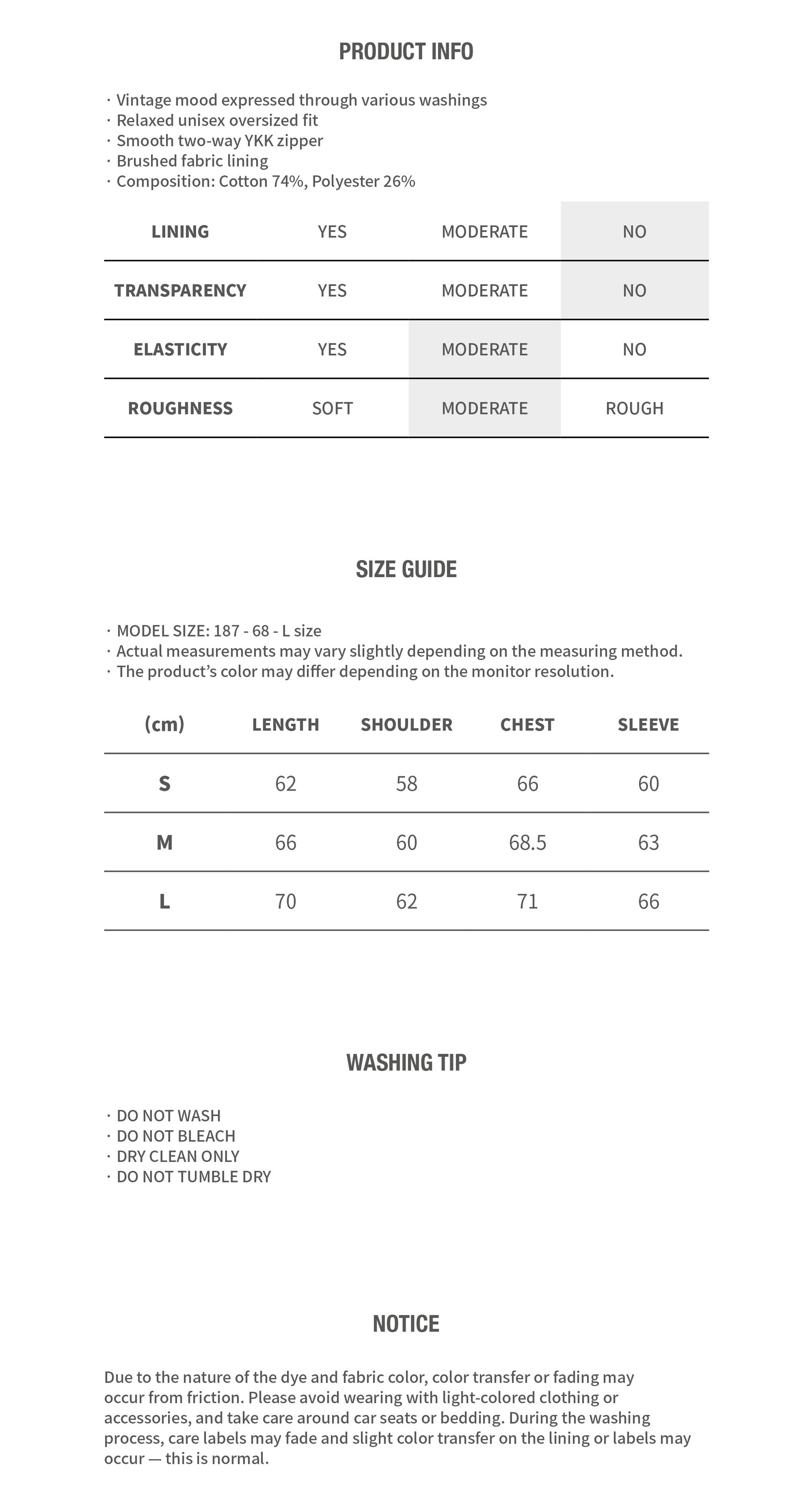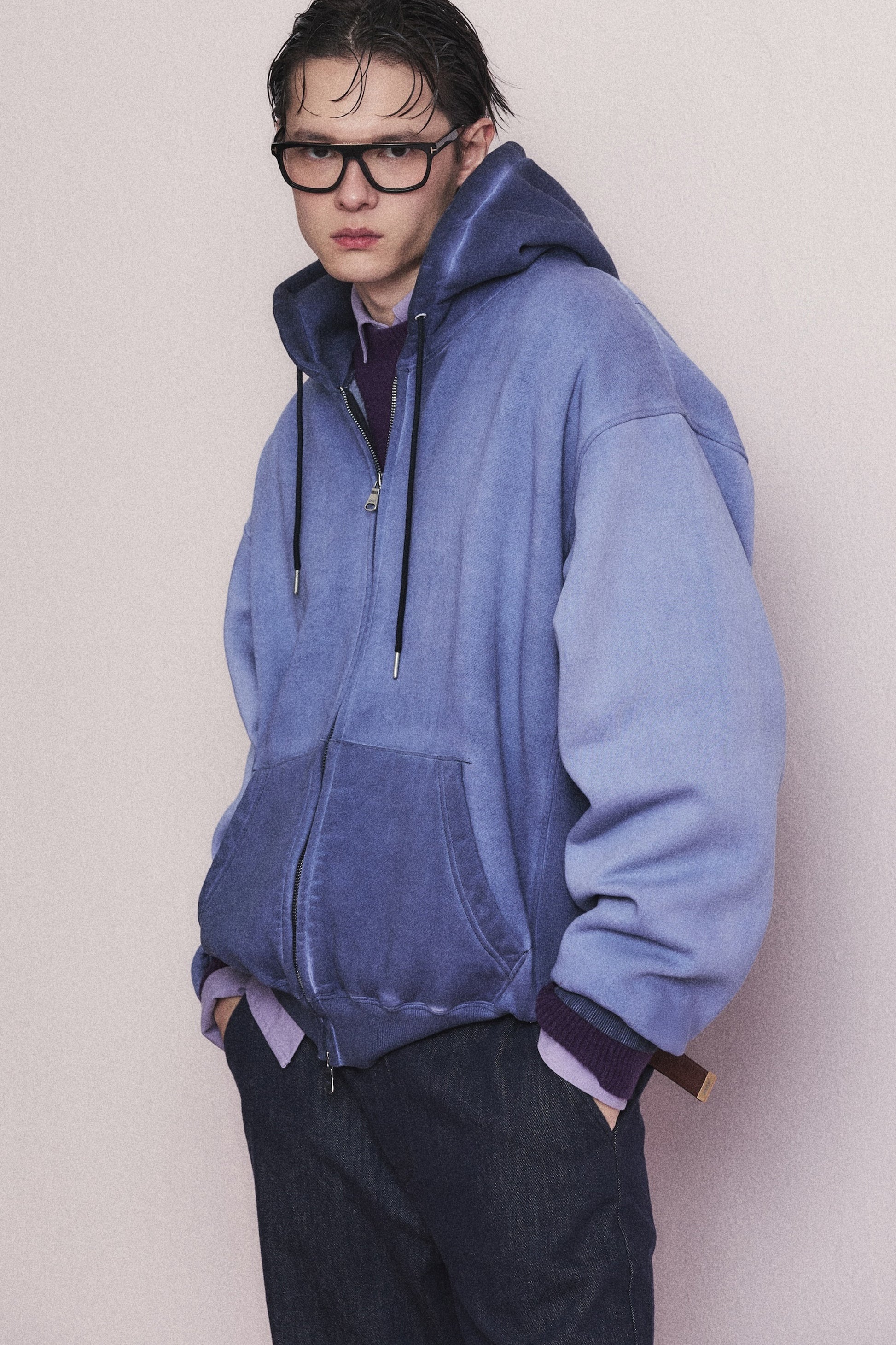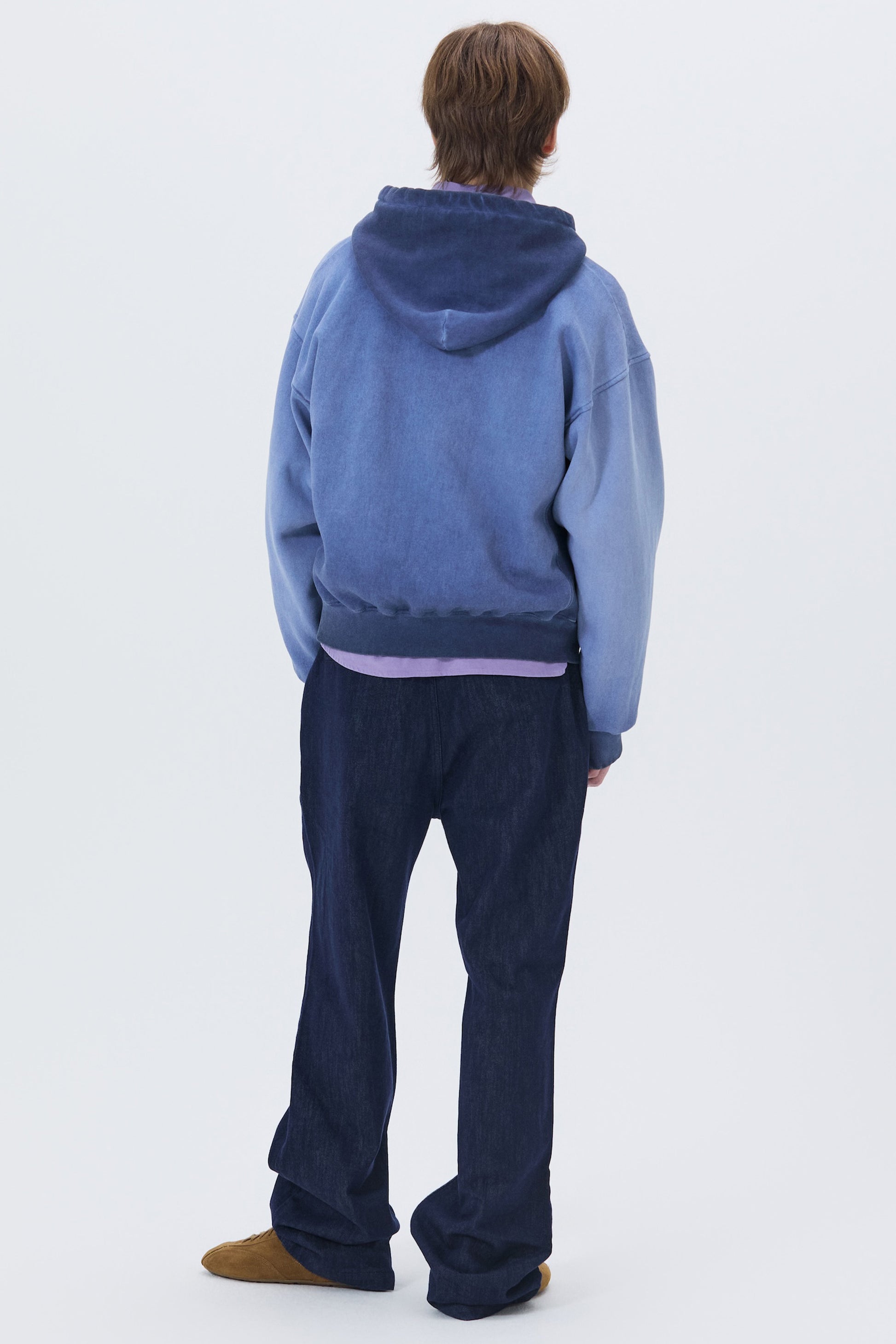 MINIMAL WASHED HOODIE ZIP-UP BLUE