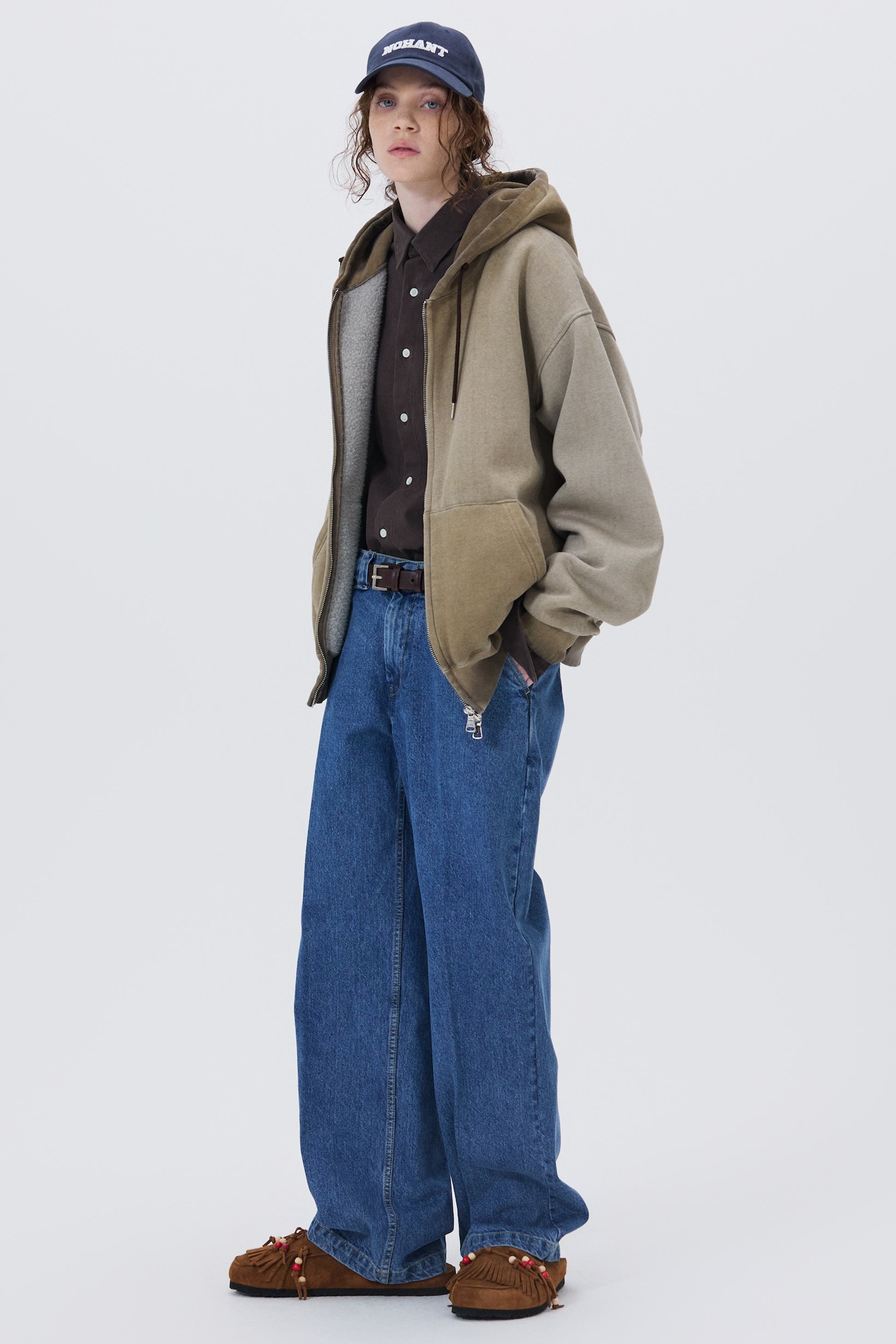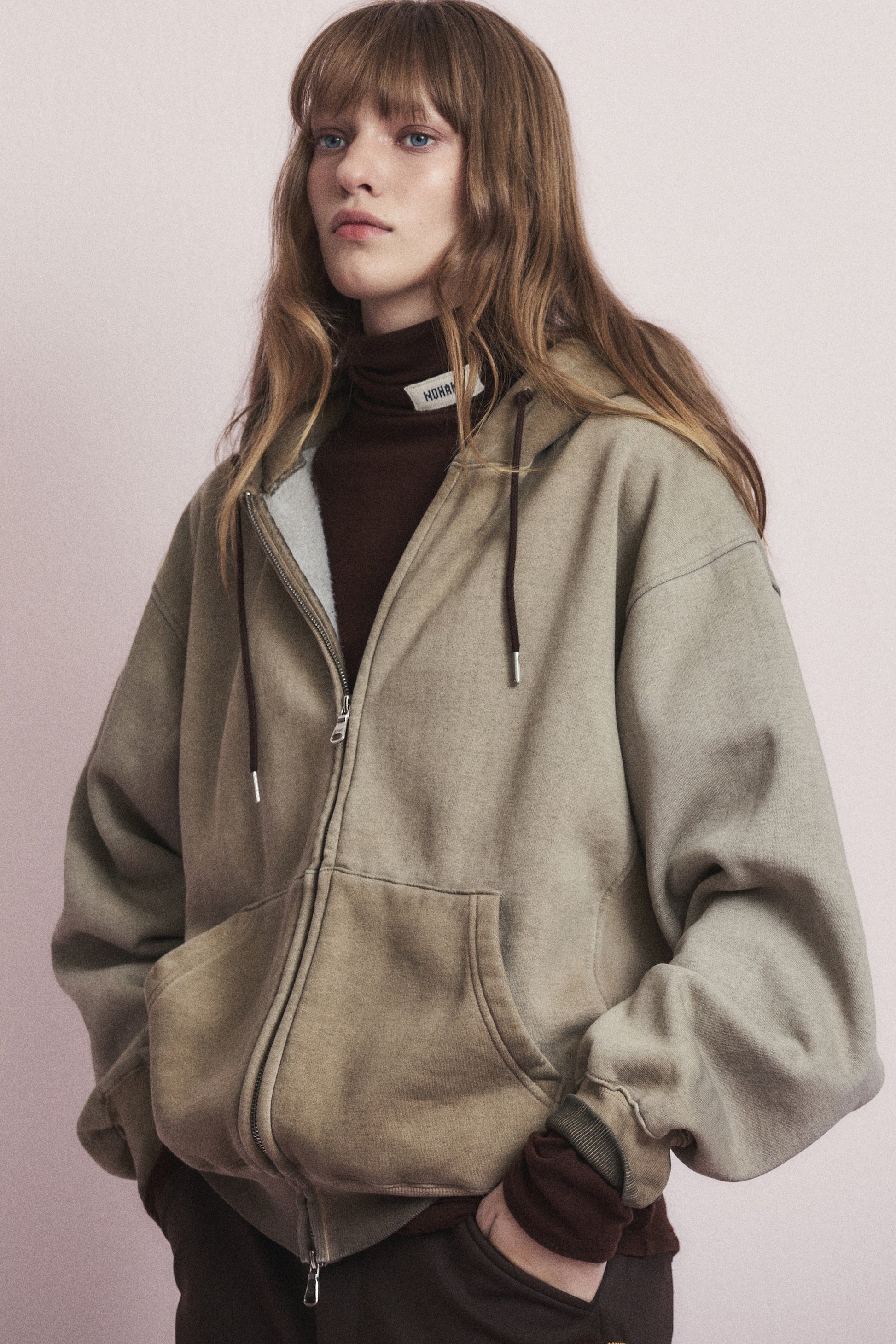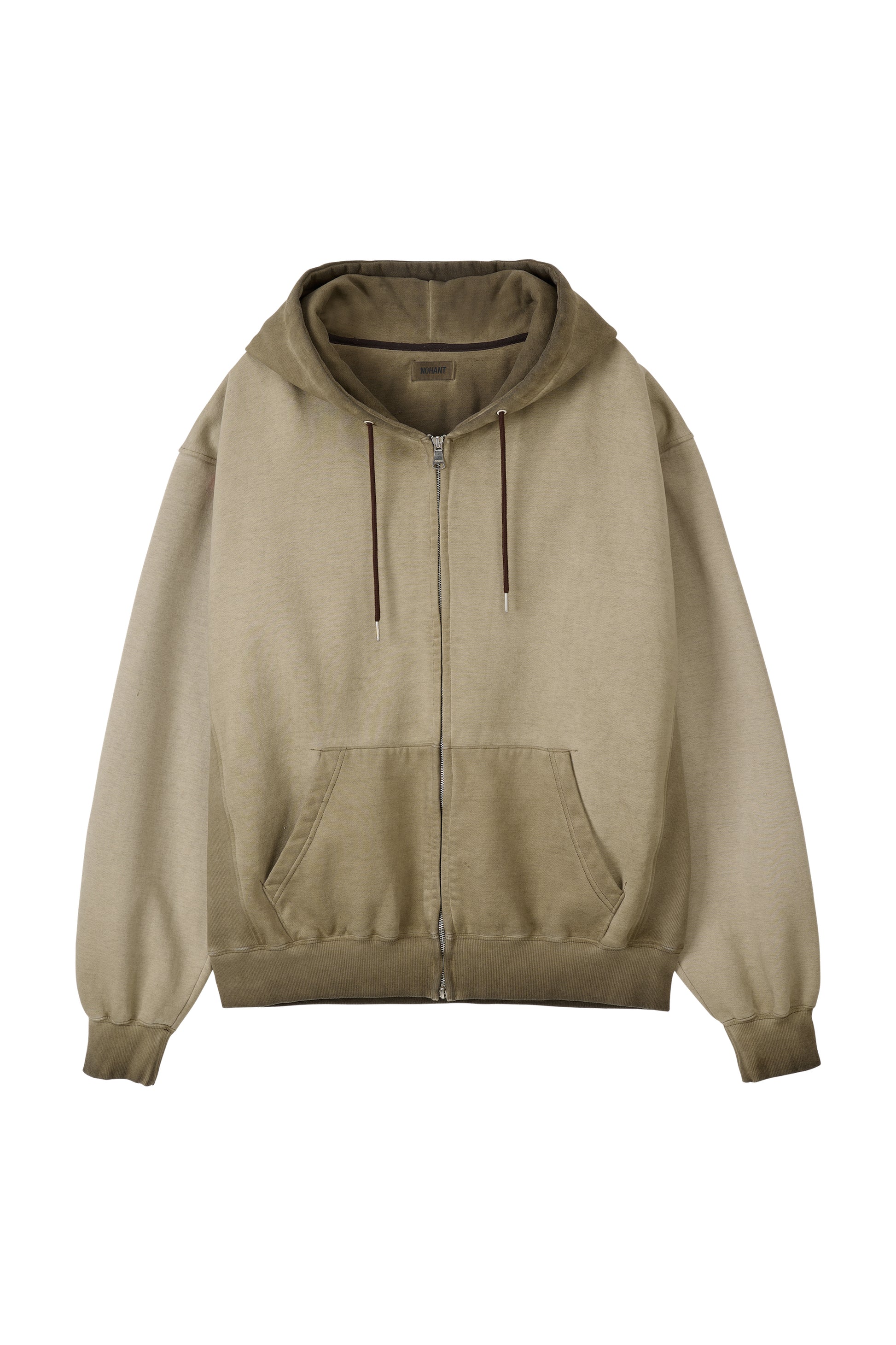 MINIMAL WASHED HOODIE ZIP-UP BROWN