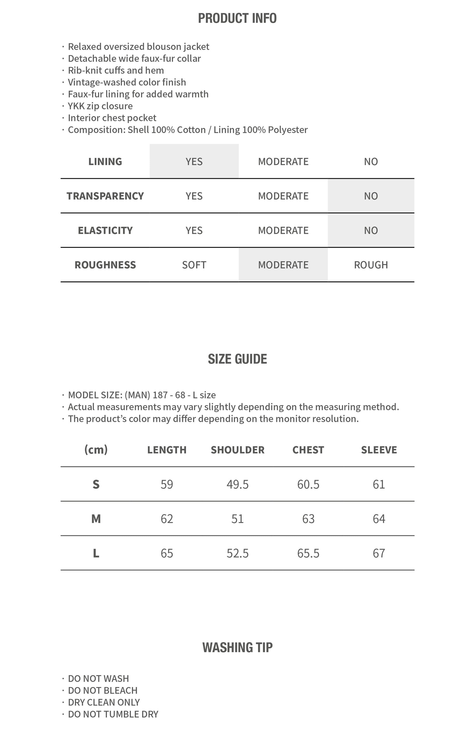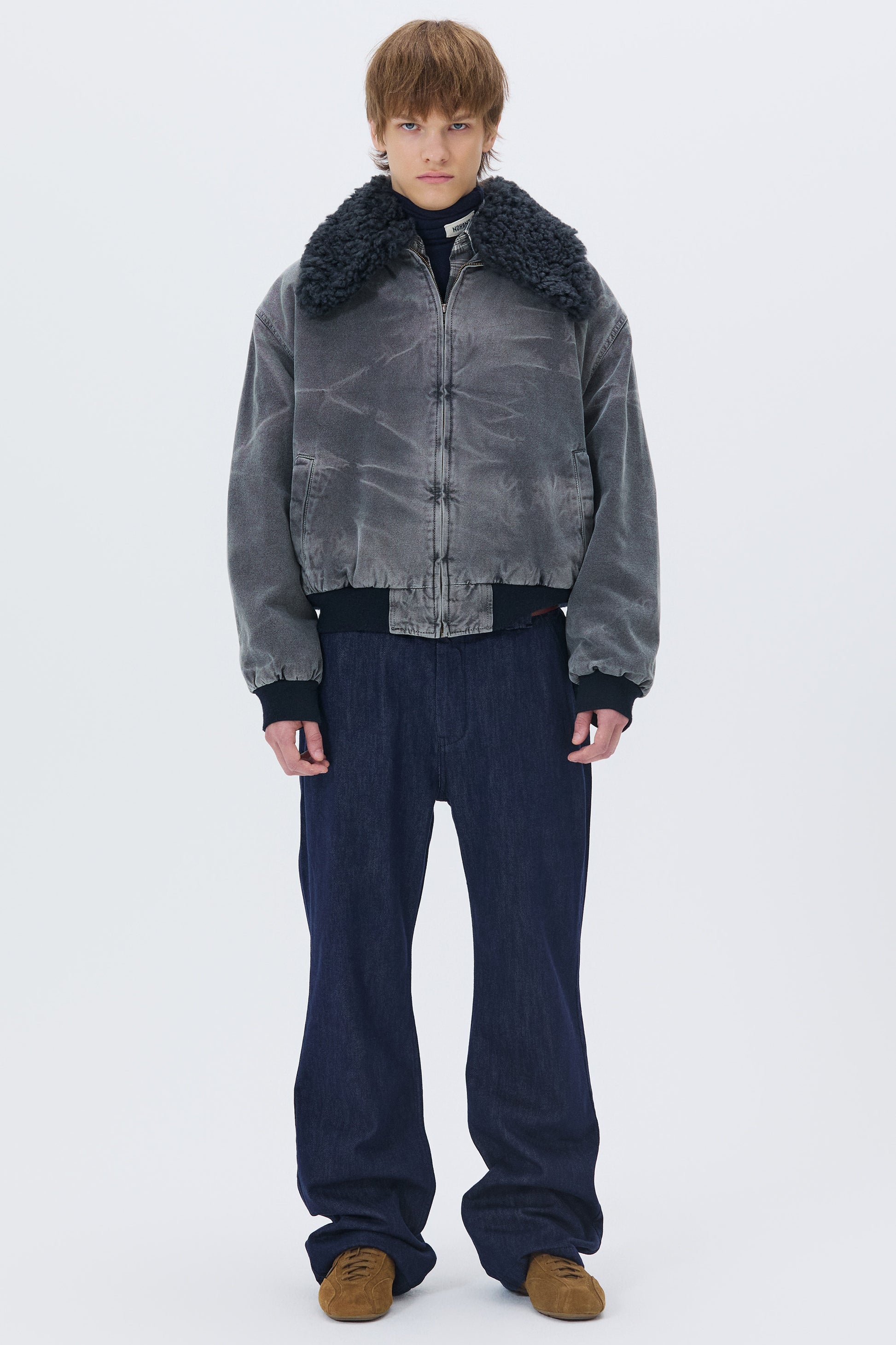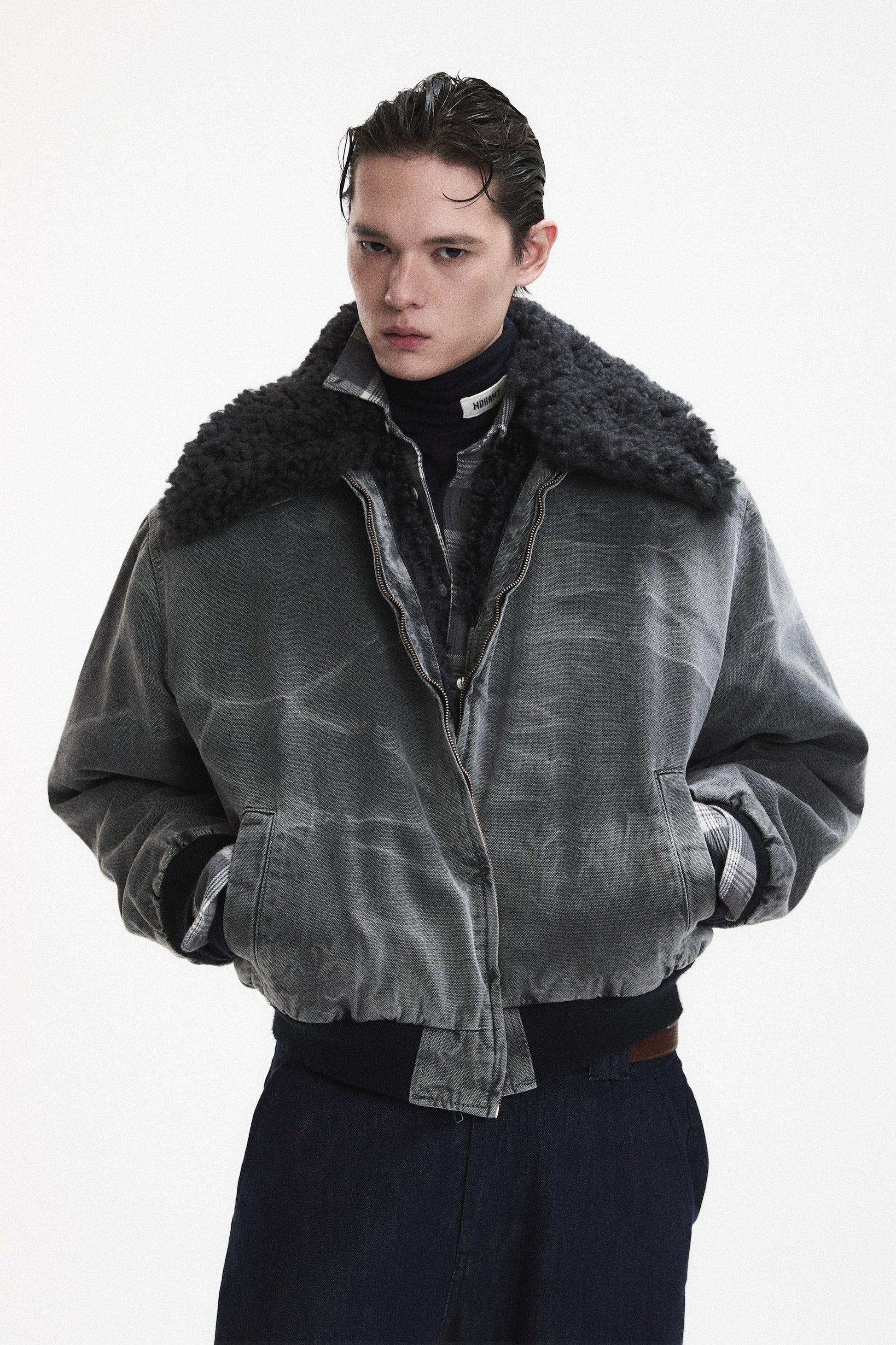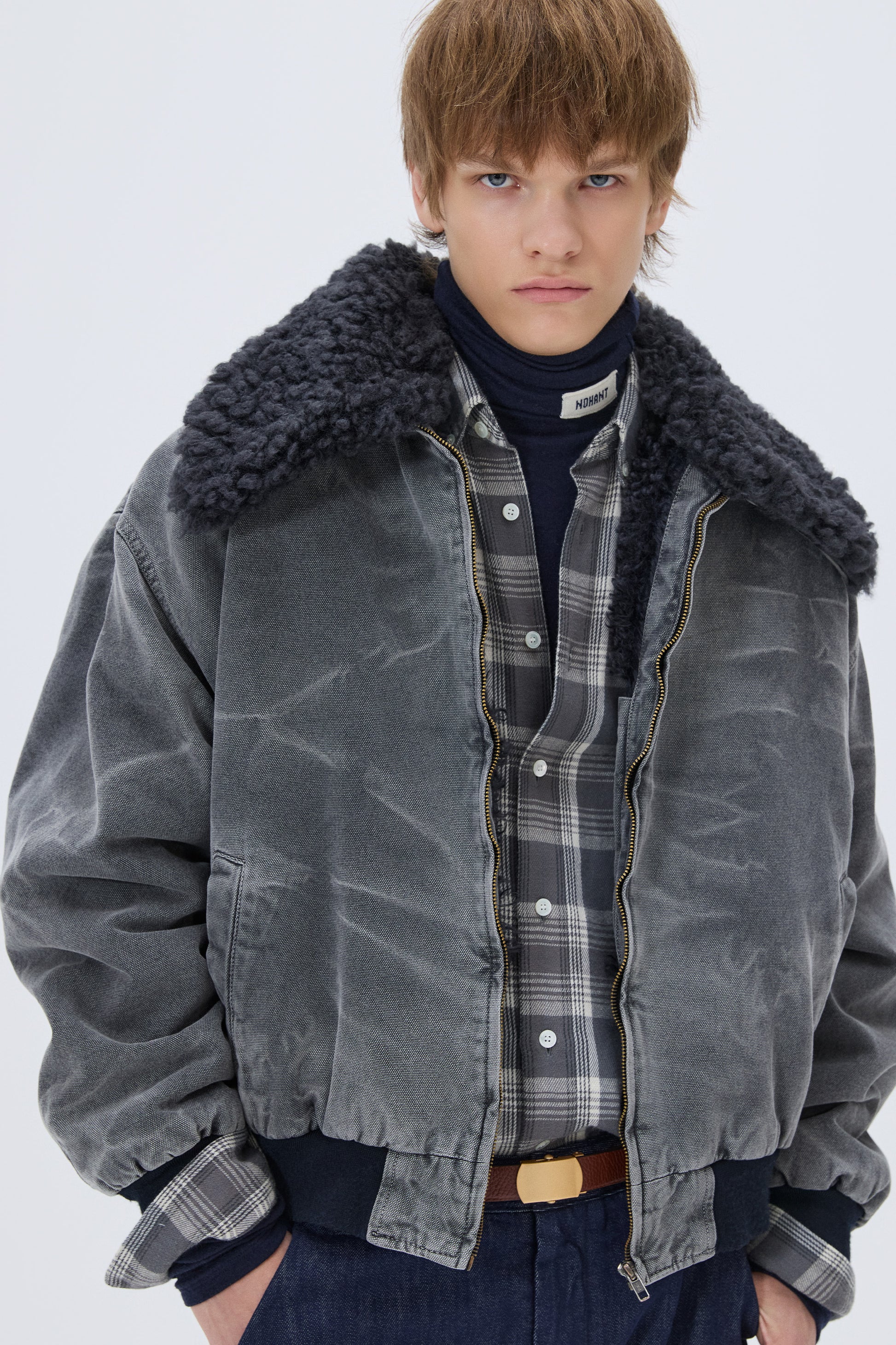WASHED SHEARLING COLLAR BLOUSON CHARCOAL